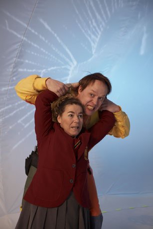 I skallen på Preben Johnsson utspelar sig i ett tält och är en annorlunda teaterupplevelse om rädslor och hur man kan lära sig att hantera dem.